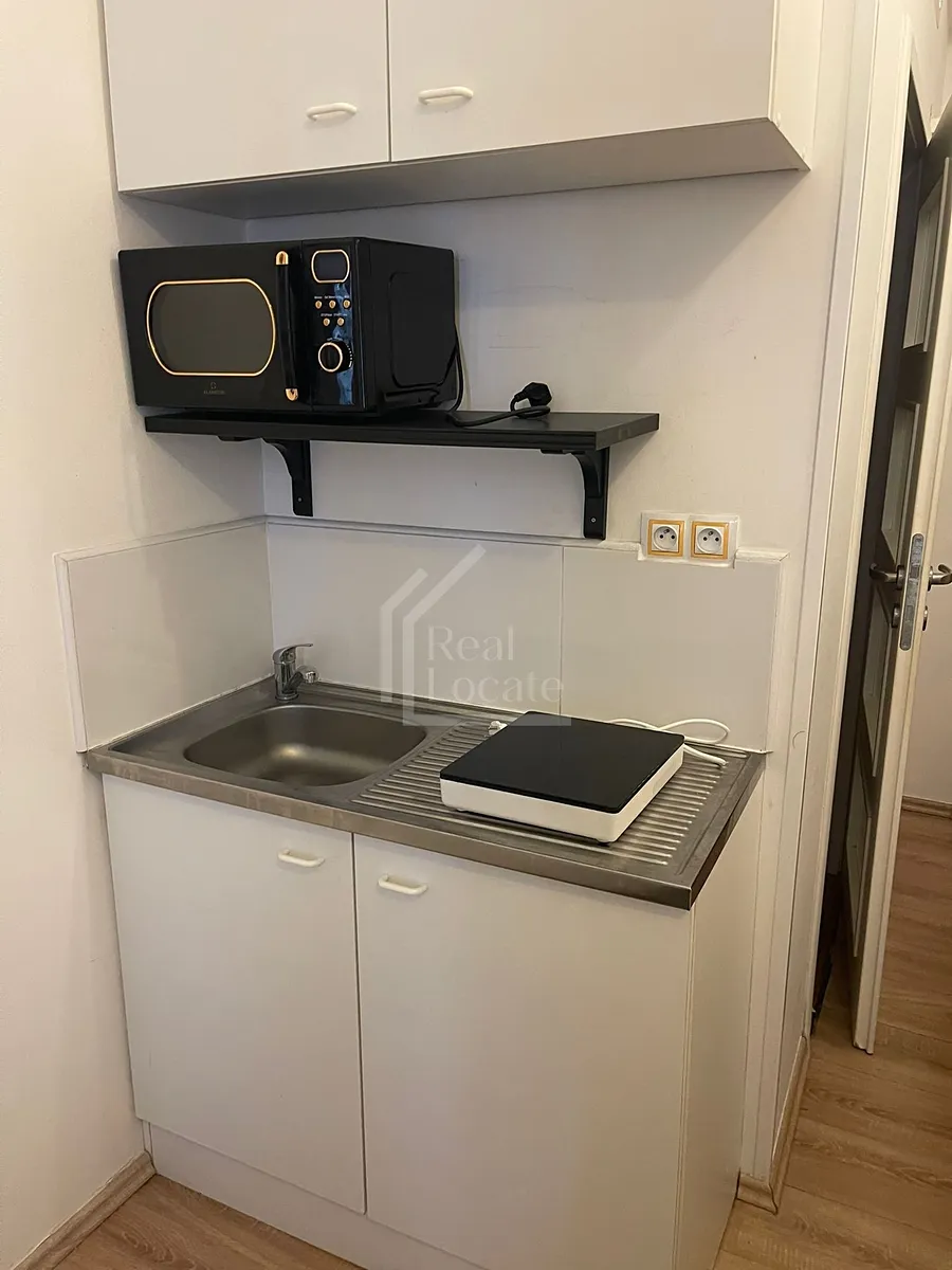 Součástí bytu je také malá kuchyňka vybavená lednicí, což poskytuje komfort pro přípravu jídel. Byt je možné pronajmout i na dobu 6 měsíců, což je skvélé pro ty, kteří hledají krátkodobé bydlení v této lokalitě.