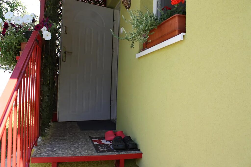 Příjezd po asfaltové cestě, parkování v oplocené zahradě. Pěšky dojdeme k vlakové zastávce i zastávce MHD. Na kole po cyklostezce.