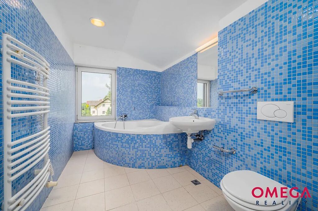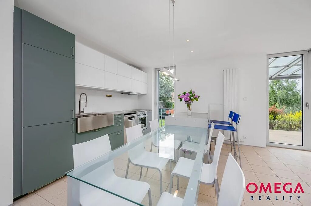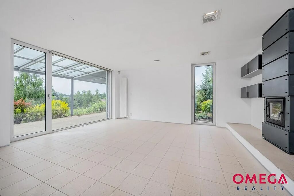 Exkluzivní nabídka pronájmu moderního RD o velikosti 4+kk o výměře cca 126 m2 se zahradou 875 m2 Dům bude připraven k nastěhování od 3.11.2025. Jednopatrový dům je postaven dle návrhu architektonického studia Schaufler a Roskovec. Skládá se z velkého obývacího prostoru (s krbem) s novým kuchyňským koutem, pracovny v přízemí a dvou ložnic v patře. V přízemí je dále malá koupelna se sprchovým koutem, komora + vestavěné skříně v chodbě. V prvním patře se nachází velká koupelna s rohovou vanou a technická místnost pro praní a žehlení. Vkusná nově pořízená kuchyňská linka je vybavena vestavěnými spotřebiči (sporák se sklokeramickou deskou Miele, ledničkou s mrazákem a myčkou). V obývacím pokoji je krb. Dvě terasy se vstupem z obývacího pokoje. Stání pro 4 vozy. Nemovitost je nově napojena na kanalizační řád. Služby zahradníka jsou zahrnuty v ceně nájmu. Veškerá občanská vybavenost v obci Kamenice 5 minut autem. Klidné okolí v blízkosti přírody, 20 min. na M Chodov a 25 min. na Vinohrady (Flora) a 1 min. autem na zámek Štiřín (golf). Dům má alarm a na míru dělané bezpečnostní uzamykatelné panely. Dobrá dopravní dostupnost do Prahy. Odběr elektřiny a plynu se převádí na nájemce.