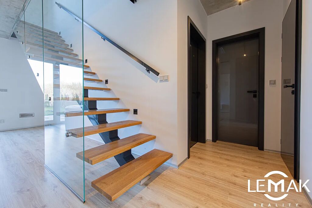 Dům je postaven s využitím monolitických stropů a celkově disponuje podlahovým vytápěním, což přispívá k rovnoměrnému a příjemnému teplu v celém domě. K nemovitosti náleží také dvě parkovací místa a zahrada.