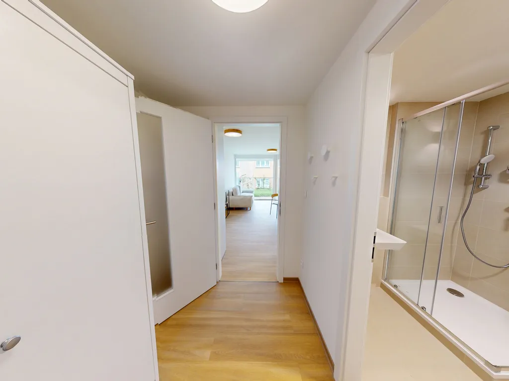 Bonus navíc? Malá zahrádka – ideální místo pro relax, víkendové snídaně nebo večerní sklenku vína. Všechno je úplně nové a čeká jen na svého prvního nájemníka.