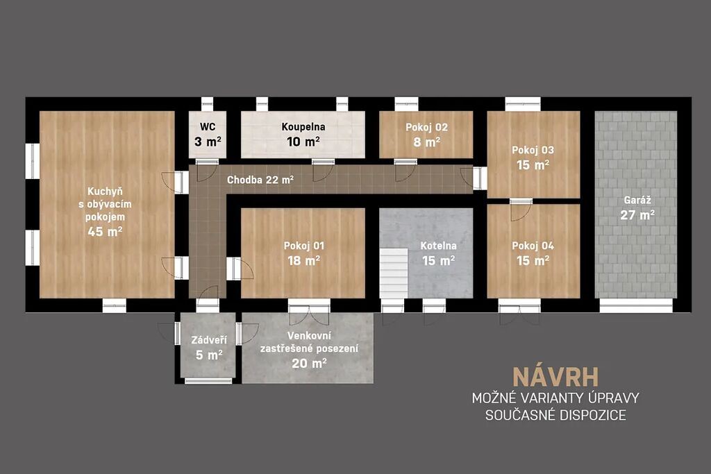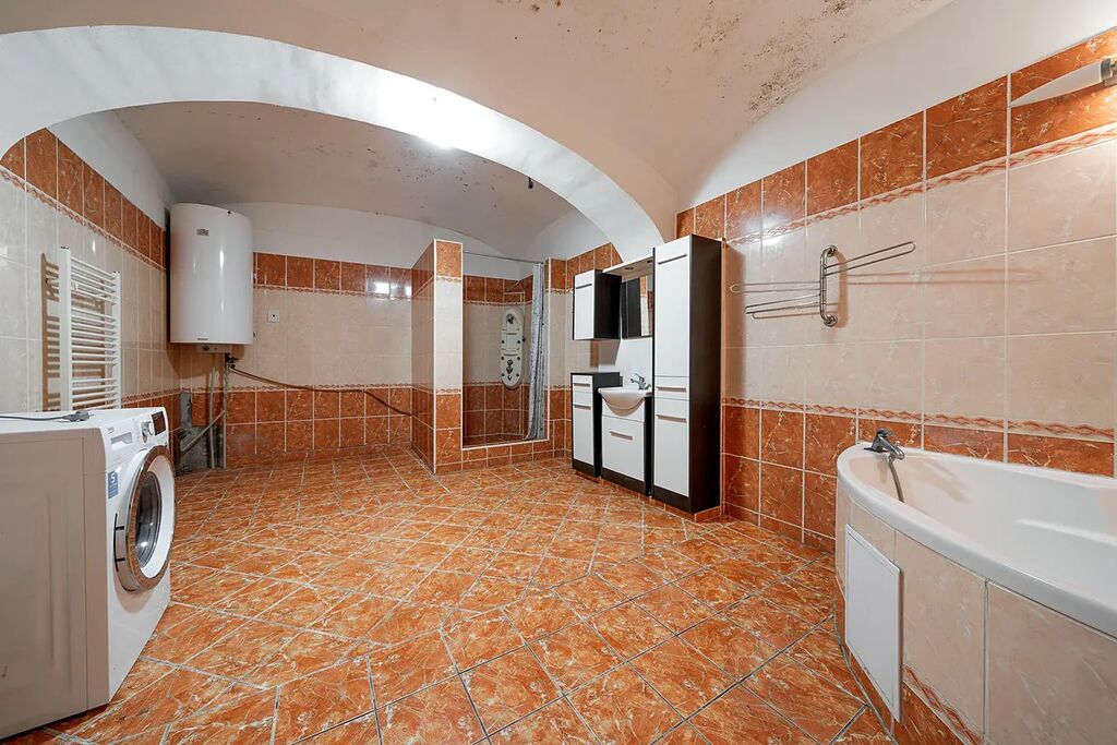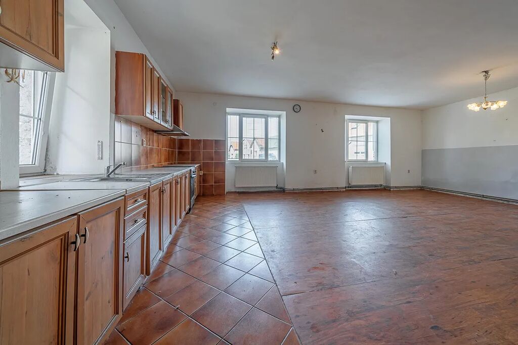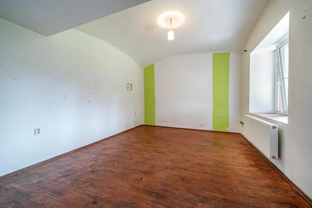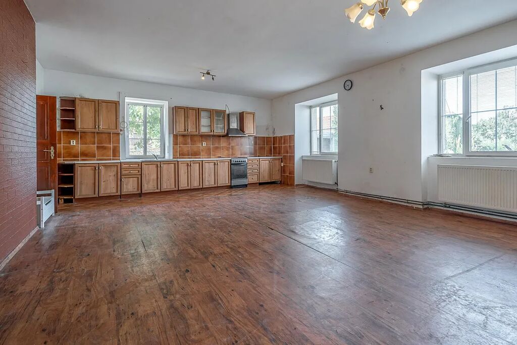 V našem osobním vlastnictví nabízíme k prodeji rodinný dům se zahradou v centru obce Krchleby okresu Kutná Hora. Dispozice domu je v současném stavu 2+kk + koupelna (100 m2), dílnou 67 m2 a garáží 27 m2, která lze přetvořit např. na 5+kk viz. návrh půdorysu v inzerci. Pro rozšíření bydlení je také možné využít podkroví o užitné ploše 190 m2. Dům leží na pozemku o celkové výměře 752 m2 z čehož je 276.6 m² zastavěné plochy.
