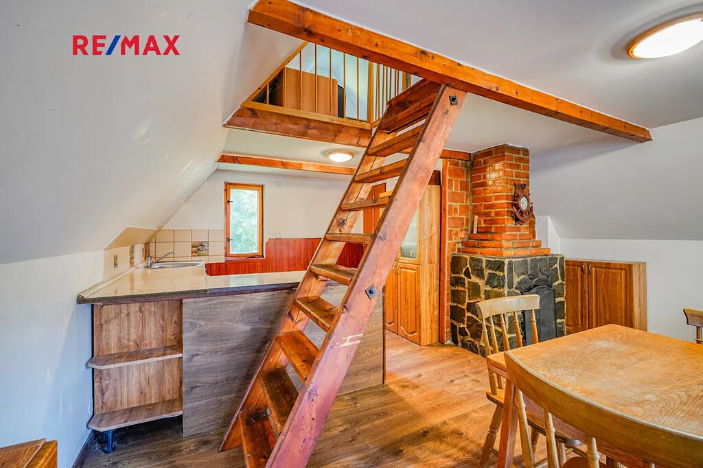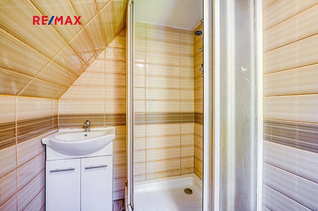 Dům je rozdělen do tří podlaží, v 1. podlaží se nachází vstupní chodba a místnost kterou lze využít například jako dětský pokoj. Ve 2. podlaží se nachází obývací pokoj s krbem, kuchyní a koupelnou se sociálním zázemím. Ve 3. podlaží nalezneme další pokoj který lze využít například jako dětský pokoj, ložnici a nebo pracovnu. Dále je na zahradě k dispozici polozapuštěný bazén a domek pro zahradní náčiní. Díky vysokým vzrostlým stromům po obvodu pozemku nabízí zahrada dostatek klidu a soukromí. Dům prošel 10 let zpět kompletní rekonstrukcí včetně zateplení, je vybaven plastovými okny s dvojskly, elektroinstalací kompletně v mědi, plovoucími podlahy a střechou z plechové taškové krytiny. Vytápění je zde řešeno pomocí krbu a ohřev vody pomocí elektro bojleru.