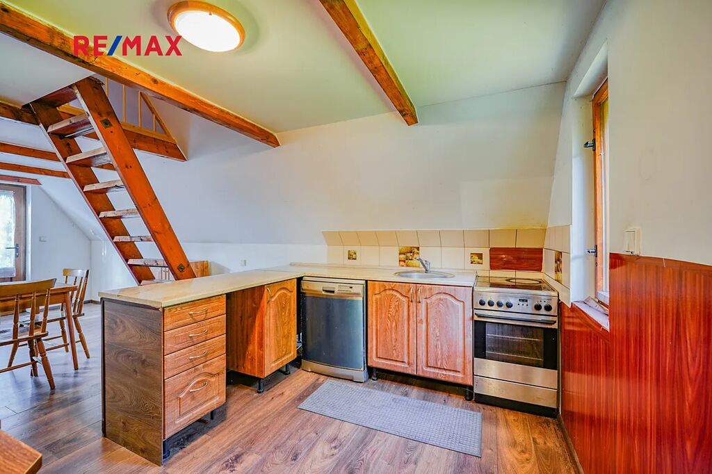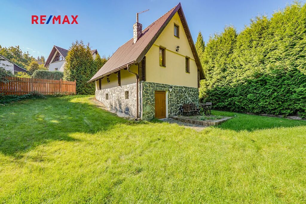 Chata je rozložena do tří podlaží, v 1. podlaží se nachází vstupní chodba a místnost kterou lze využít například jako dětský pokoj. Ve 2. podlaží se nachází obývací pokoj s krbem, kuchyní a koupelnou se sociálním zázemím. Ve 3. podlaží nalezneme další pokoj který lze využít například jako dětský pokoj, ložnici a nebo pracovnu. Dále je na zahradě k dispozici polozapuštěný bazén a domek pro zahradní náčiní. Díky vysokým vzrostlým stromům po obvodu pozemku nabízí zahrada dostatek klidu a soukromí. Chata prošla 10 let zpět kompletní rekonstrukcí včetně zateplení, je vybavena plastovými okny s dvojskly, elektroinstalací kompletně v mědi, plovoucími podlahy a střechou z plechové taškové krytiny. Vytápění je zde řešeno pomocí krbu a ohřev vody pomocí elektro bojleru.