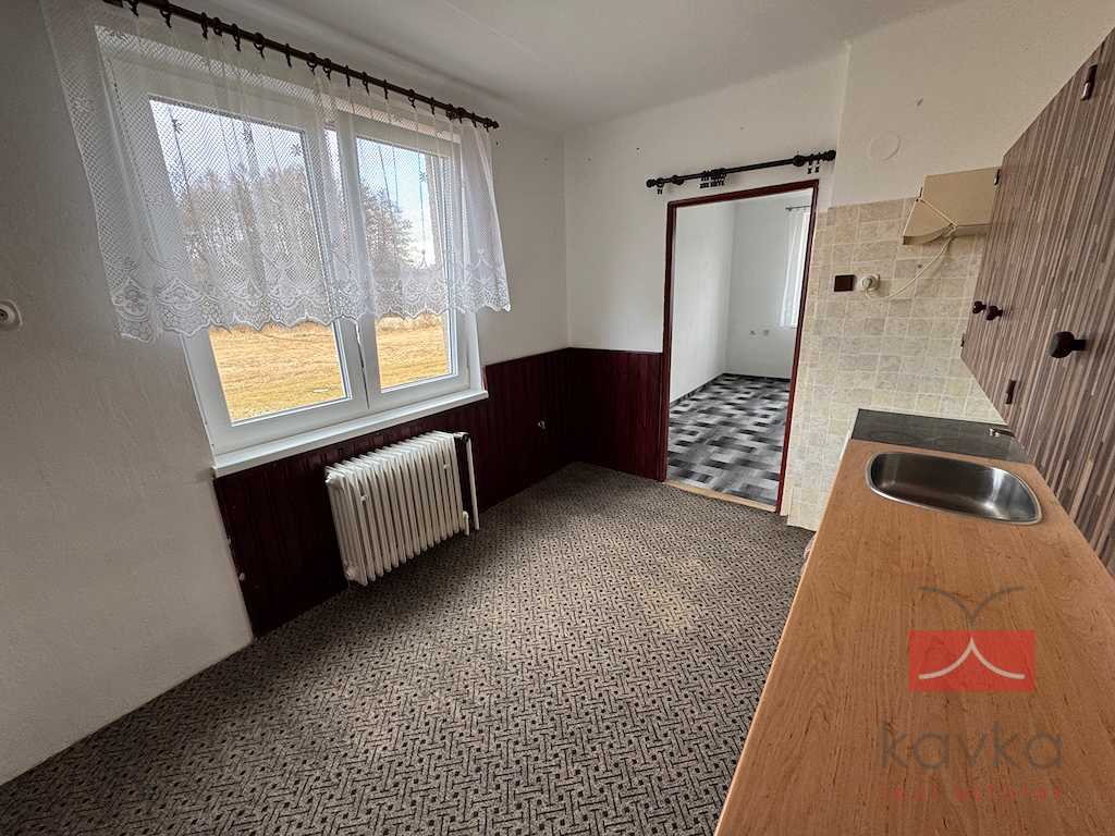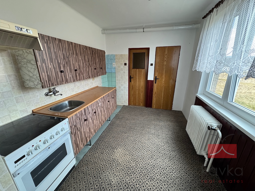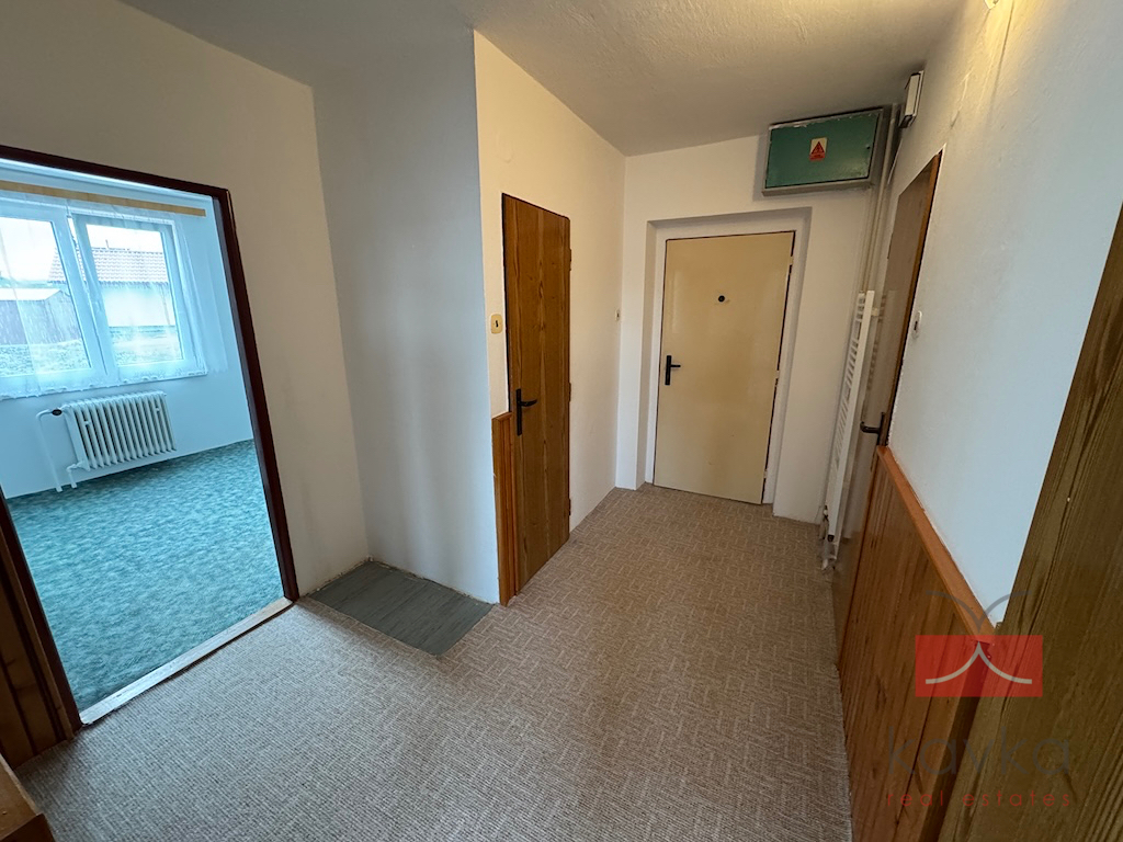 KAVKA REAL ESTATES si Vám dovoluje exkluzivně nabídnout k pronájmu družstevní byt 3+1 o užitné ploše 76,96 m2 a celkové užitné ploše 99,46 m2 v obci Kejžlice - nedaleko Humpolce (6 km – pět minut jízdy autem). Byt se nachází ve 1.NP cihlového domu bez výtahu. Dispoziční členění bytu: vstupní chodba, samostatné WC, koupelna (vana), kuchyň s jídelnou, spíž, obývací pokoj, ložnice, pokoj, sklad, vstupní chodba. Dále k bytu náleží sklepní kóje (8 m2) a kotelna včetně skladu na tuhá paliva (14,5 m2). Vytápění bytu je řešeno plynovým kotlem a kotlem na tuhá paliva. Rekonstrukce únor 2025 (nová plastová okna, vymalování bytu). Velmi klidná lokalita. Veškerá občanská vybavenost v obci. V případě zájmu o více informací či prohlídku kontaktujte makléře společnosti.