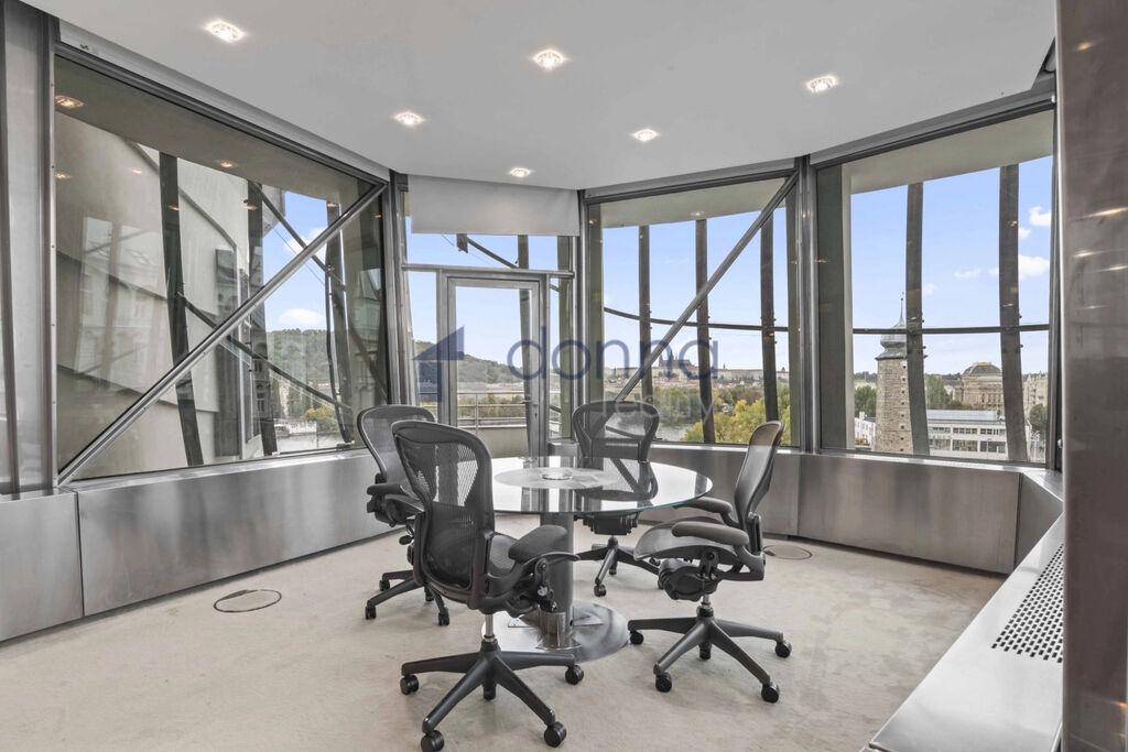 Jedna se o kancelářské prostory se soukromým balkonem v 6. nadzemním podlaží, kancelář nabízí výjimečný výhled na Vltavu a panorama Pražského hradu. V budově je 24 hod. recepce, výtah, možnost pronájmu zasedací místnosti. Dům nabízí možnost využití terasy s krásným výhledem na Pražský hrad a Vltavu, dále také restauraci či bar v posledním patře s jedinečným výhledem. Poloha zaručuje efektivní dopravní spojení na hlavní silnice a dálnice ve všech směrech - Pražský městský okruh, D1, D5 a D8 a současně přístup k městské hromadné dopravě jako je metro B Karlovo náměstí a tramvajové linky Jiráskovo náměstí, Palackého náměstí a Karlovo náměstí. Lokalita je velice žádaná a velice lukrativní a strategická pro schůzky, či návštěvy Vašich klientů. Parkování v okolí budovy. Ihned volné. Neplatíte provizi !