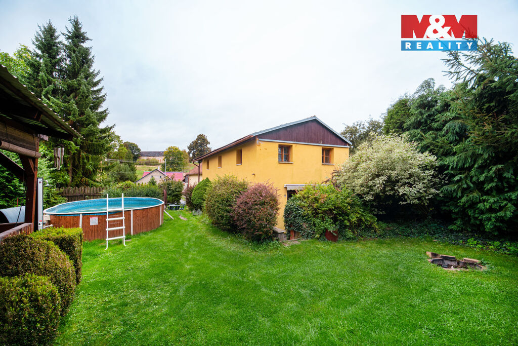 Nemovitost obklopuje udržovaná zahrada. Součástí je bazén, zastřešená pergola s krbem, udírna, pískoviště a atrakce pro děti. Část zahrady tvoří obecní pozemek, jedná se o odkoupení.