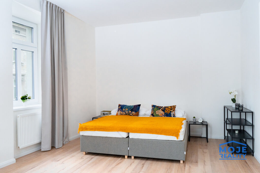 Nabízíme k pronájmu byt o velikosti 2+KK 44,51 m² v centru Plzně. Bytová jednotka se nachází ve 2. patře cihlového domu s výtahem a je po celkové rekonstrukci. Nachází se 2 minuty chůzí od OC Plaza a asi 5 minut od náměstí v ulici Kotkova. Po vstupu do zádveří se po pravé straně nachází koupelna s toaletou, sprchovým koutem, umyvadlem a závěsným topením. Z předsíně můžeme dále vstoupit do kuchyně, která je vybavena kuchyňskou linkou se spotřebiči, tzn. mikrovlnnou troubou, digestoří, varnou deskou, lednicí s mrazákem a pračkou. Z kuchyně dále vstupujeme do prostorného pokoje, který může být po domluvě vybaven za příplatek k nájemnému. Podlahy bytu jsou pokryté vinylem a dlažbou. Teplo v domě je zajištěno vlastním kotlem a teplou vodu zajišťuje el. bojler. Byt se pronajímá vybaven za poplatek 2 500 Kč