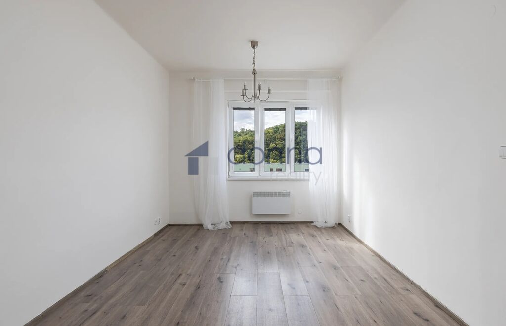 Byt je bez nábytku, v kuchyni je zánovní kuchyňská linka na míru a také velká vestavěná skříň.