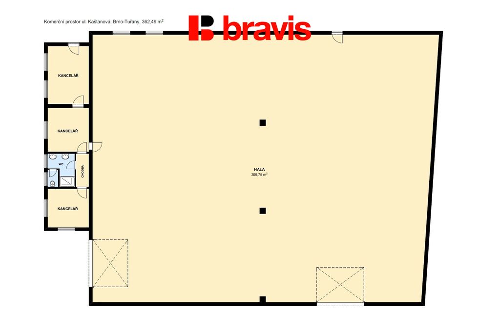 Na kancelářské prostory je navázaná hala 309,75m2.