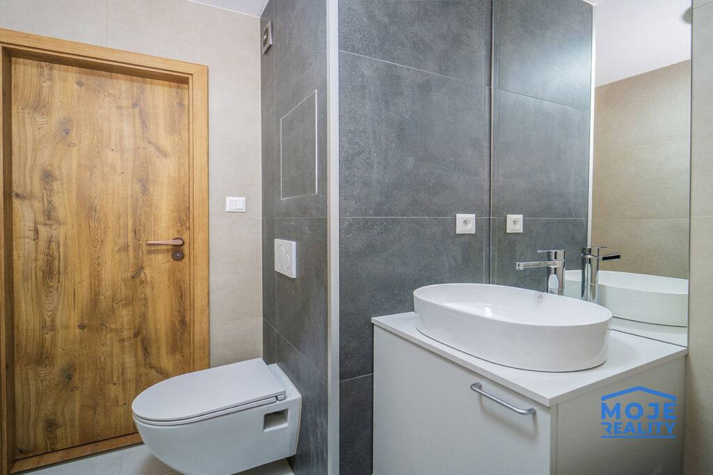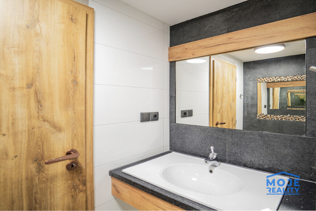 dvě moderní koupelny – jedna s prostorným sprchovým koutem, druhá s vanou a toaletou