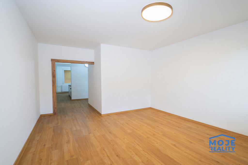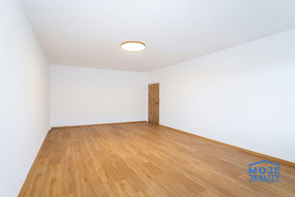 nové rozvody elektřiny, vody i odpadů, vyrovnané podlahy s celoplošnou dřevěnou krytinou, nové štuky a elektroinstalace