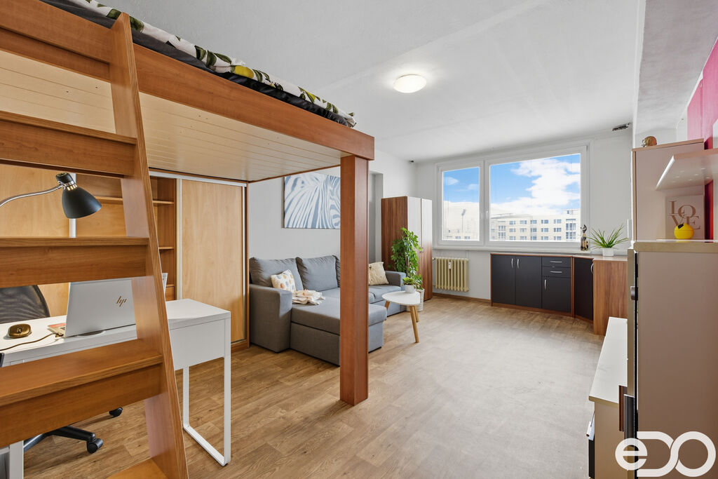 Představte si ráno v útulném bytě, kde každý kout má své místo. Tento byt 1+1 o velikosti 43 m² v Mladé Boleslavi, umístěný v 6. patře panelového domu, je připravený k okamžitému nastěhování – vybavená kuchyňská linka se spotřebiči, nábytek a obývací část, která zároveň slouží jako ložnice i pracovna.