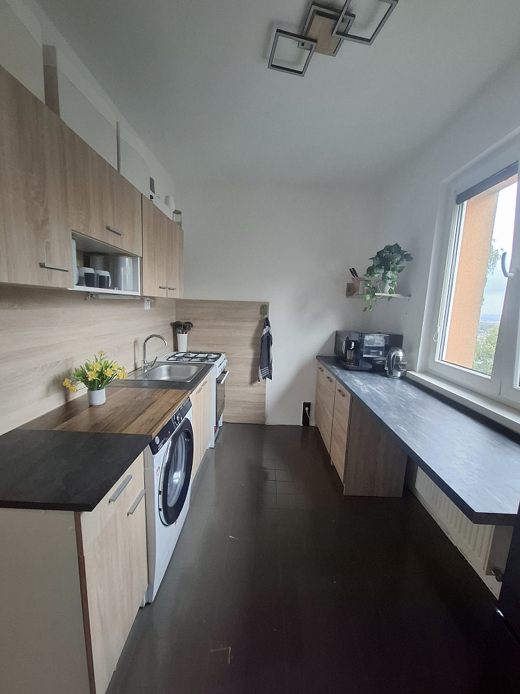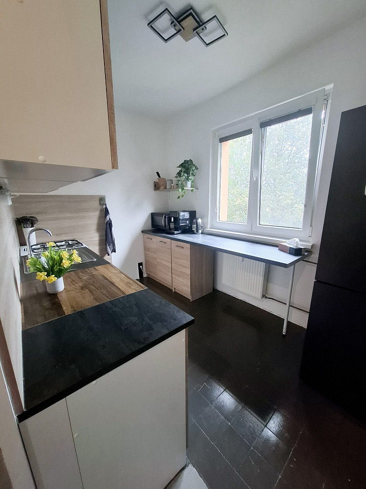 Nabízíme Vám k podnájmu bytu 2+1, který má dva neprůchozí pokoje a prostorný sklepe ve Vratimově. Byt se nachází ve 4.NP zatepleného domu bez výtahu. Nová kuchyňská linka se spotřebiči (el. trouba, plynová varná deska, lednice s mrazákem mikrovlnná trouba a jídelní stůl se židlemi). Zděná koupelnou s umyvadlem a vanou. Toaleta je samostatně. Na chodbě je šatní skříň. Veškerá občanská vybavenost a MHD v blízkosti. Pro více informací případně dohodnutí prohlídky nás neváhejte kontaktovat.