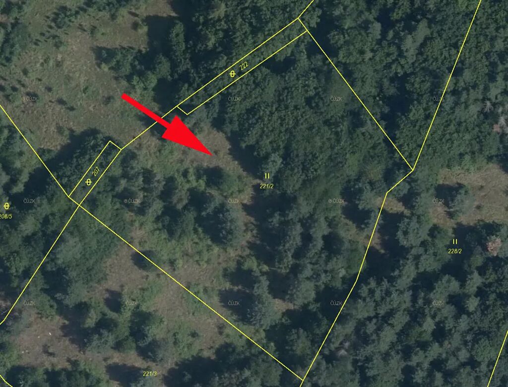Prodáme pozemek, mírně svažitou louku (jižní svah) s porostem stromů (možno vykácet)  v k.ú. Bohutín nad Moravou, parc.č. 221/2.