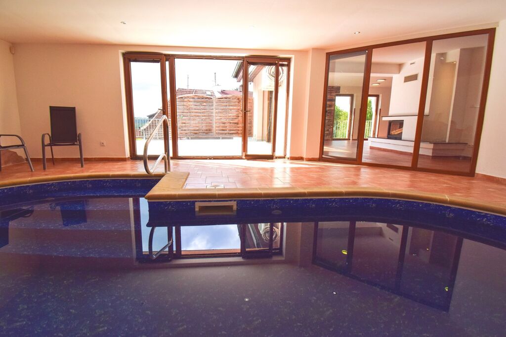 Krbová kamna nejen pro dlouhé zimní večery dodávají obývacímu prostoru nádech příjemné domácí atmosféry. Navazující prostor bazénu za prosklenými dveřmi je pak už jen třešinkou na dortu. Z bazénu můžete pohodlně vstoupit na terasu, přičemž zde máte naprosté soukromí. Privátní prostory domu jsou důmyslně ukryty před zvědavými zraky sousedů i kolemjdoucích.