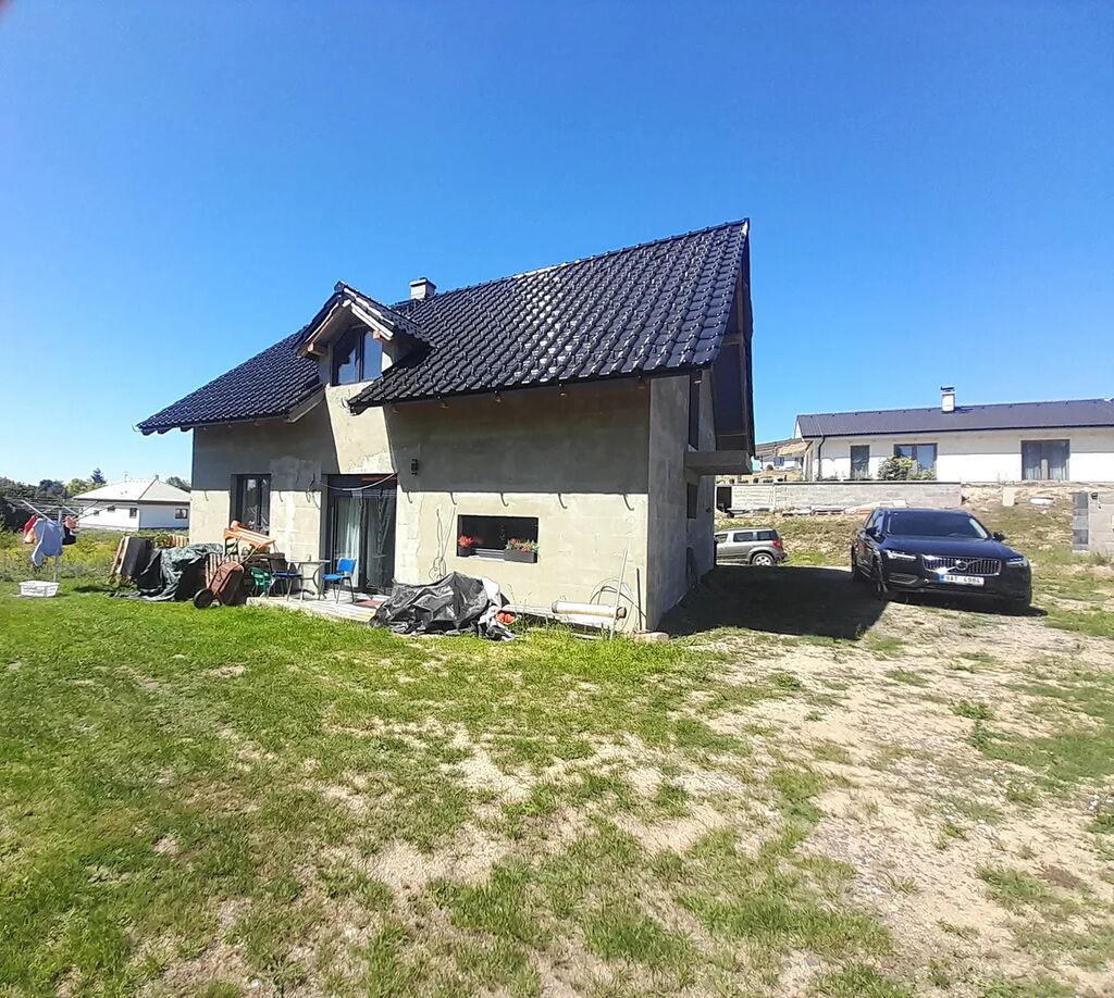Dům je postaven z Ytongových tvárnic s tepelně izolačními vlastnostmi tl.45cm přičemž přízemí je dokončené a obyvatelné, v podkroví jsou pouze příčky pokojů ze zdících tvarovek a zateplená střešní konstrukce z minerální plsti. Dům má dispozici šesti pokojů a kuchyňského koutu. Dominantou přízemí je obývací pokoj propojený s jídelním a kuchyňským koutem se vstupem na zahradu. Vzhledem k jižní orientaci je tento prostor dostatečné prosvětlený a vzdušný. V obývacím pokoji se nachází krbová kamna se sklem a nabízí se tak možnost příjemného posezení s pohledem na oheň a zároveň s možností vytápění domu. V přízemí se dále nachází ložnice, samostatný pokoj, předsíň se schodištěm do patra, koupelna se sprchovým koutem a WC a technická místnost. V podkroví je připravena dispozice tří samostatných pokojů a velké koupelny ve stavu hrubé stavby. Tento stav může být výhodou pro vlastní realizaci designového provedení.