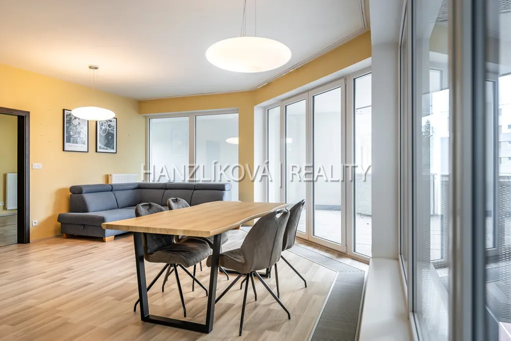 Nabízíme k prodeji nadstandardní bytovou jednotku číslo A.5.1. Jedná se o byt 3+1 o výměře 92,40 m2 + terasa 35,50 m2, který se nachází v 5.NP nového rezidenčního komplexu DLOUHÁ LOUKA 2.etapa. Byt se skládá z: prostorné chodby, koupelny, samostatné toalety, dvou samostatných pokojů a prostorného obývacího pokoje s kuchyní a jídelnou. Byt je orientovaných na východ. Z obývacího pokoje a ložnice je přístup na velkou terasu (35,50m2). Byt zůstane částečně zařízený - kuchyňská linka včetně spotřebičů, , jídelní stůl, židle, sedací souprava, skříně. Dům je vybaven dvěma výtahy, videotelefony, kabel. rozvody, internetem. V přízemí jsou umístěny parkovací stání a společné prostory - kolárna, kočárkárna.