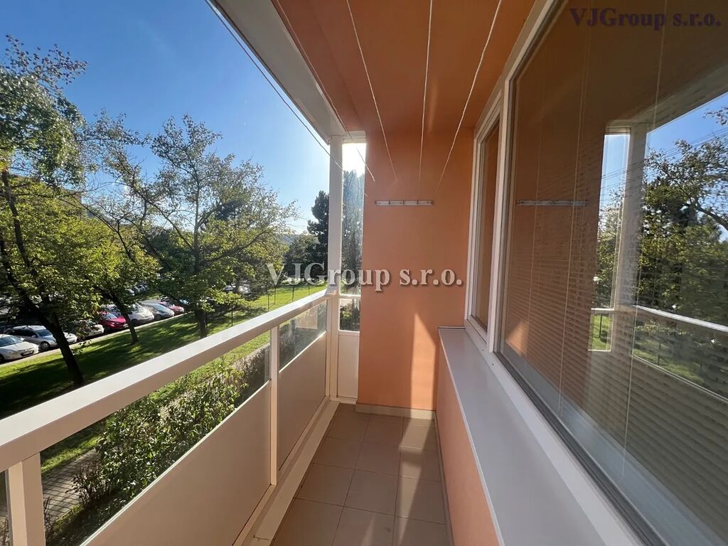 Bytová okna včetně dveří na lodžii jsou plastová a jsou osazena vnitřními žaluziemi. Byt je částečně vybaven i záclonami.