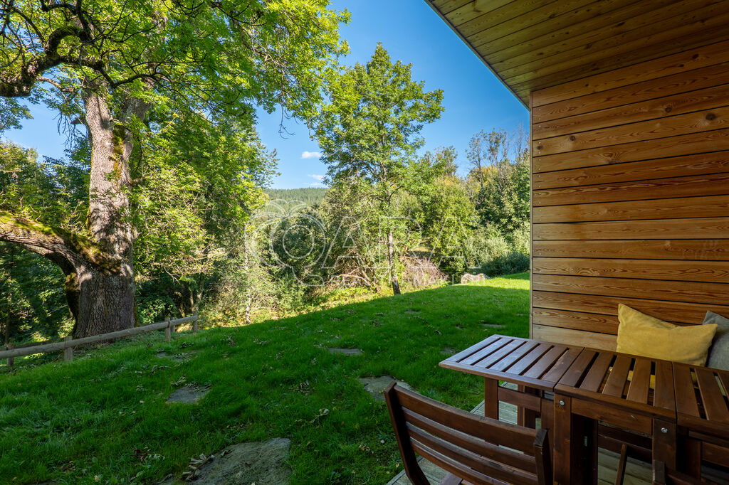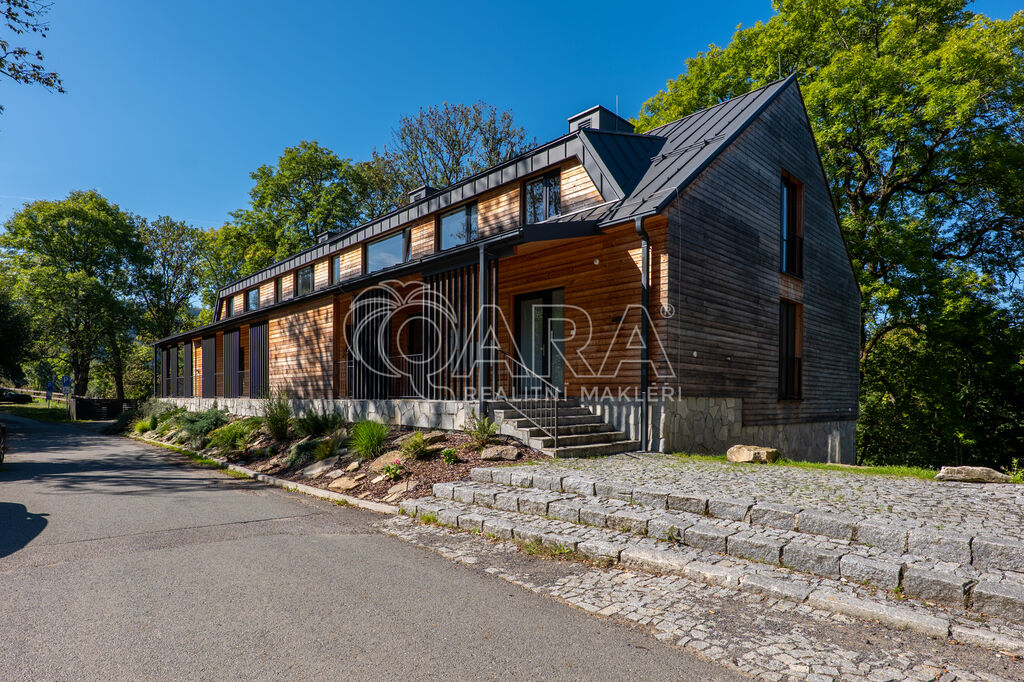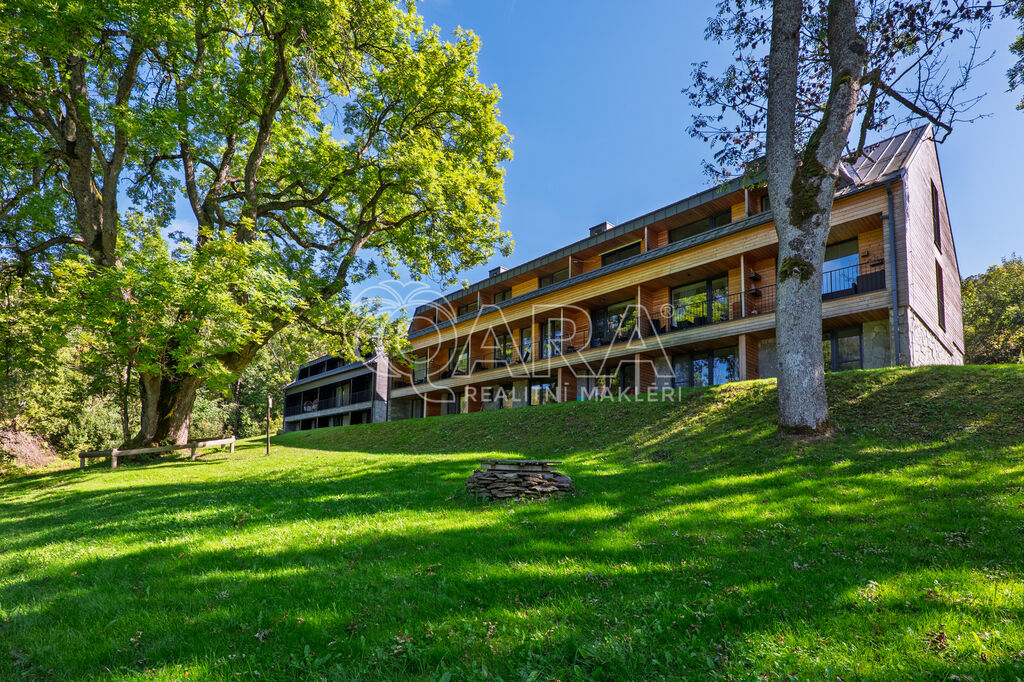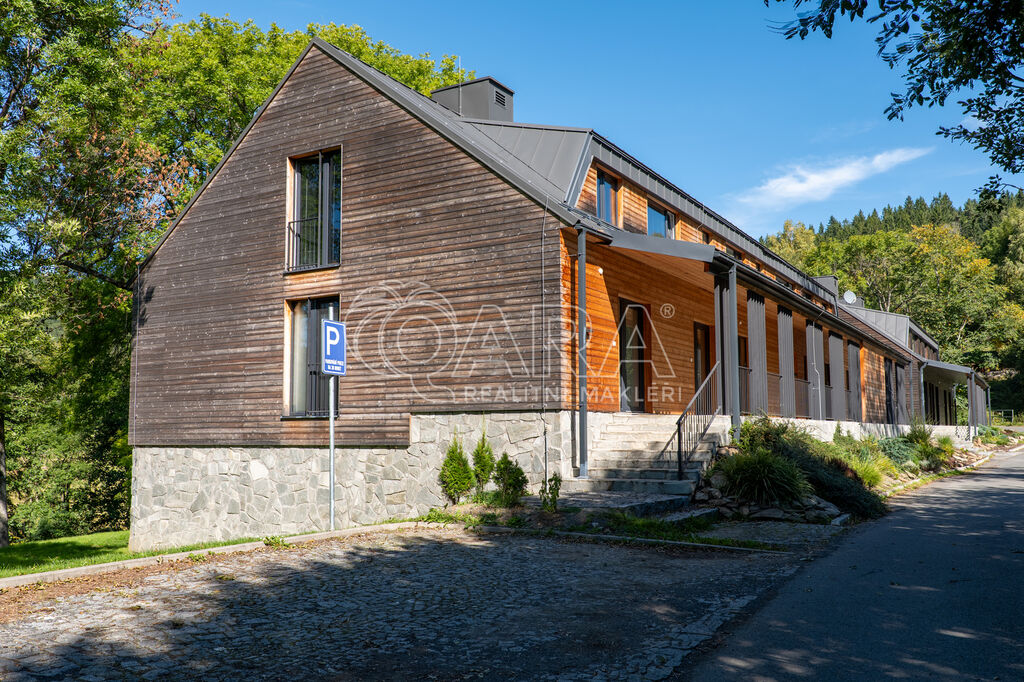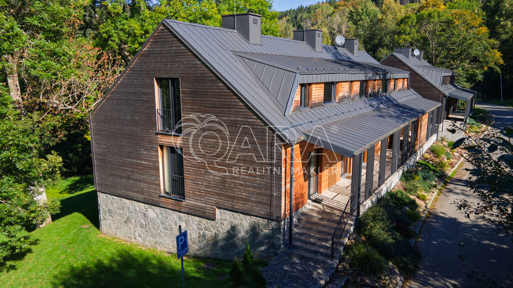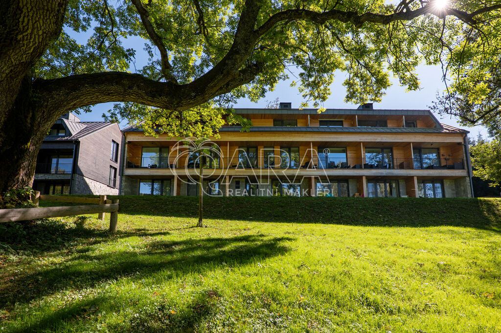 Designový byt 1+kk o velikosti 30,1 m² s terasou (5,2 m²), sklepem (2,2 m²) a vlastním venkovním parkovacím stáním. Byt umístěný v 1. PP bytového domu Jasan s přímým vstupem na vlastní terasu a poté do zahrady je součástí projektu Šumavské Stráně v lokalitě Hojsova Stráž – Brčálník.
