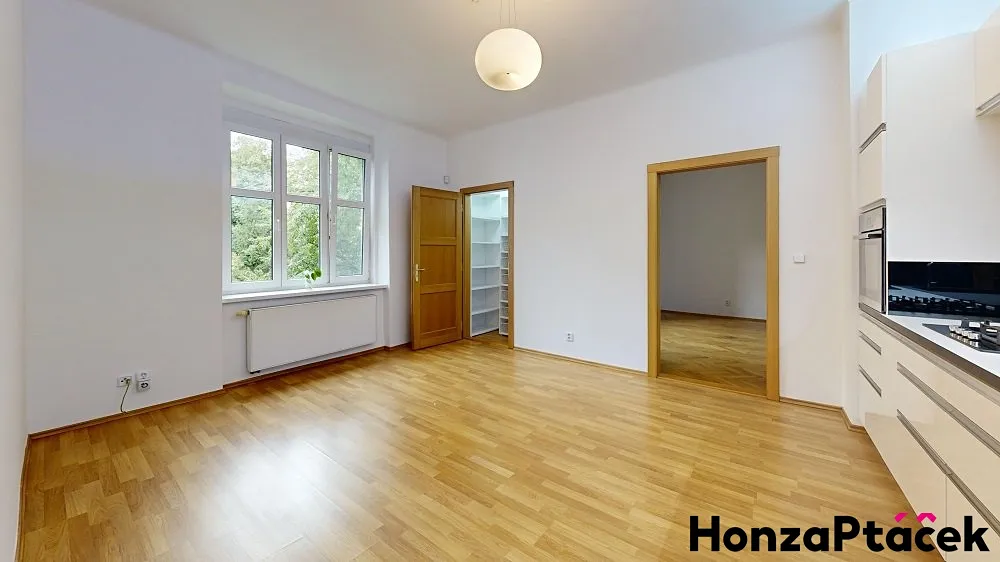 Hlavní obytná místnost nabízí dostatek prostoru pro obývací i jídelní část. Moderní kuchyňská linka je vybavena spotřebiči Bosch a poskytuje komfortní zázemí pro vaření. K dispozici je také menší komora pro uložení věcí. Koupelna prošla rekonstrukcí a je vybavena sprchovým koutem, výhodou je i samostatné WC. V prostorné chodbě se nachází vestavěná sestava skříní, která elegantně řeší úložný prostor. Z chodby je vstup na lodžii s výhledem do klidného vnitrobloku se zelení – ideální místo k ranní kávě či večernímu posezení.