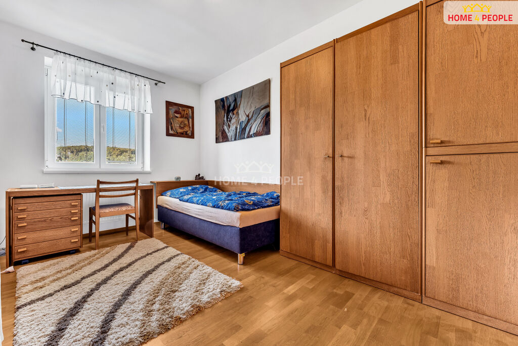 V patře jsou 4 prostorné ložnice, šatnou a koupelnou, vanou a toaletou. Půda má další prostor na uložení sezonních věcí.