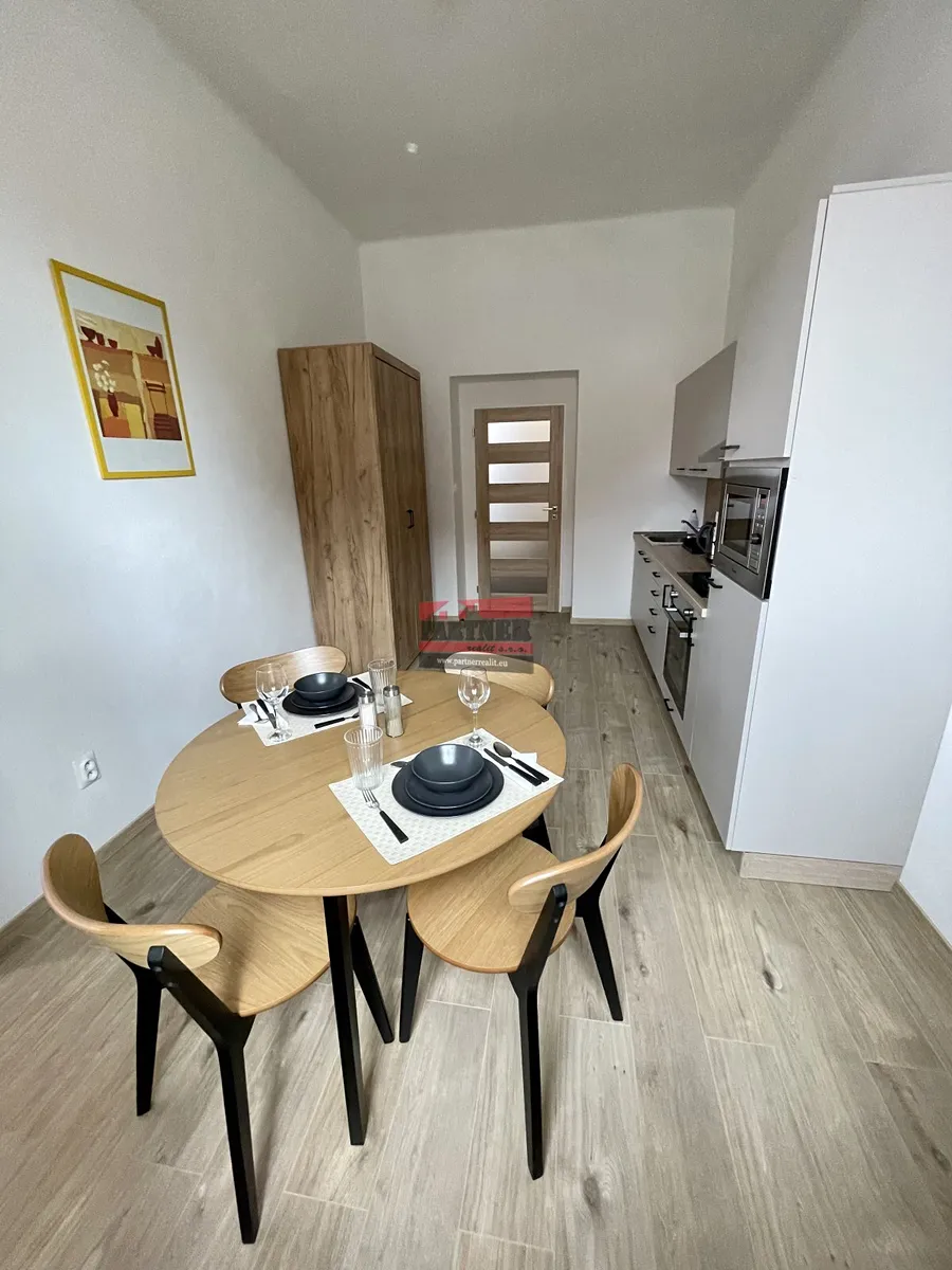 Byt o užitné ploše 48,48 m2 se nachází ve 2. nadzemním podlaží a má tuto dispozici: vstupní chodba, pokoj s kuchyňským koutem včetně nové kuchyňské linky na míru s vestavnými spotřebiči zn. Candy : lednicí s mrazákem, myčkou, troubou, indukční deskou a digestoří, atypický pokoj rozdělený příčkou na dva pokoje a koupelna s vanou a toaletou. V 1.PP se nachází sklepní kóje o výměře 2 m2 , úklidová místnost a technické zázemí.