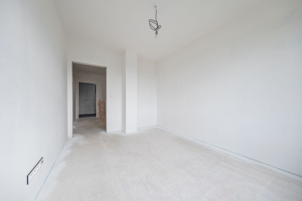Uvnitř domu vás přivítá otevřený obývací prostor s kuchyňským koutem, jehož velká okna propouštějí dostatek denního světla a propojují interiér s terasou a zahradou – ideálním místem pro relaxaci, dětské hry nebo letní grilování. Kuchyňský kout je připraven pro realizaci vaší vysněné kuchyně na míru.