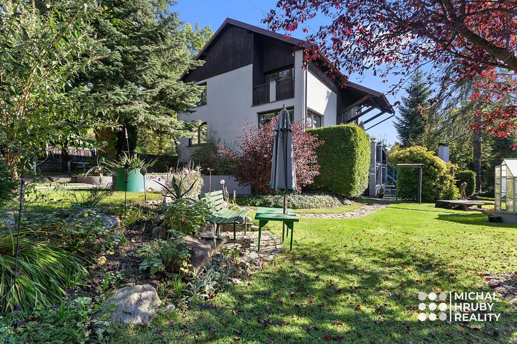 Zahrada je naprosto rovná, má 638 m2 a je rozdělena na několik funkčních částí. Najdete zde místo pro odpočinek, užitkovou část i zákoutí s krbem, kde můžete relaxovat. Postavit si můžete i bazén a pokud toužíte po soukromí, oceníte venkovní pokoj pod terasou domu. O sousedech skoro nebudete vědět, a navíc vám nic nebude rušit výhled třeba na Emu.