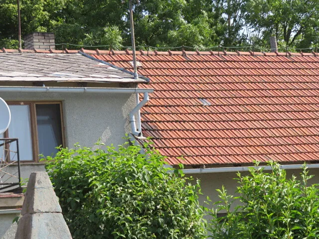 krytinou z pálených tašek (přízemní část) a částečně s krytinou z osinkocementových šablon