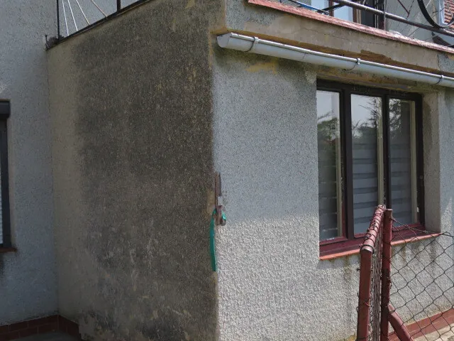 venkovními roletami. Vchodové dveře domu jsou dřevěné prosklené. Fasáda domu není zateplená.
