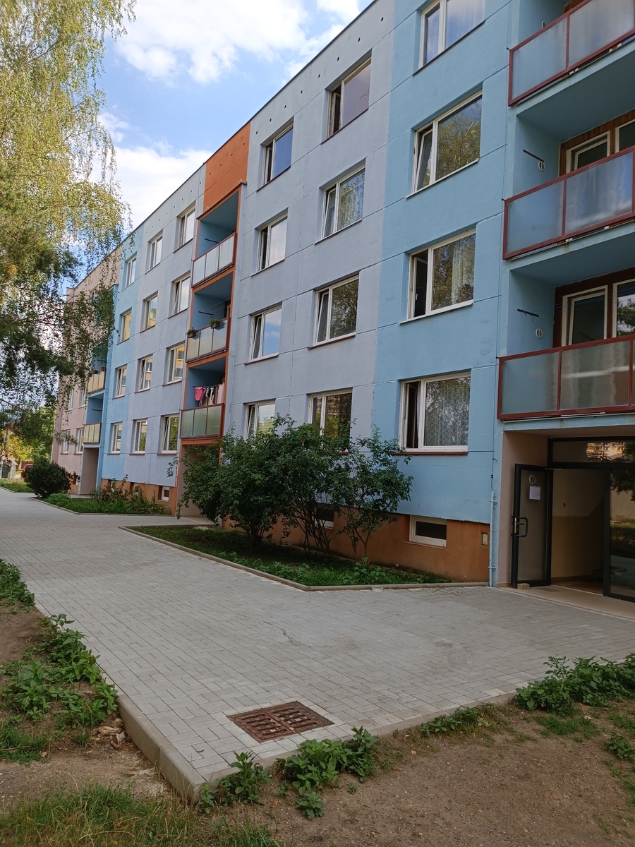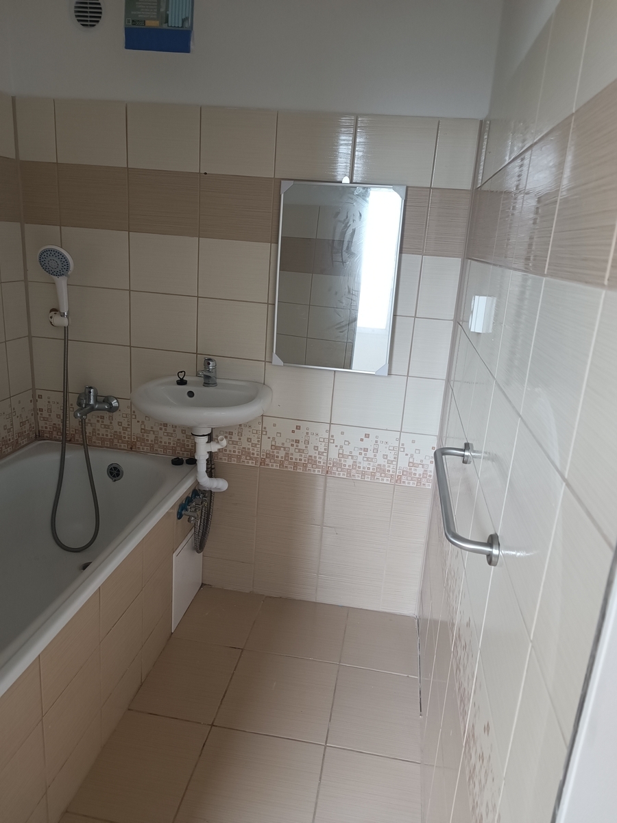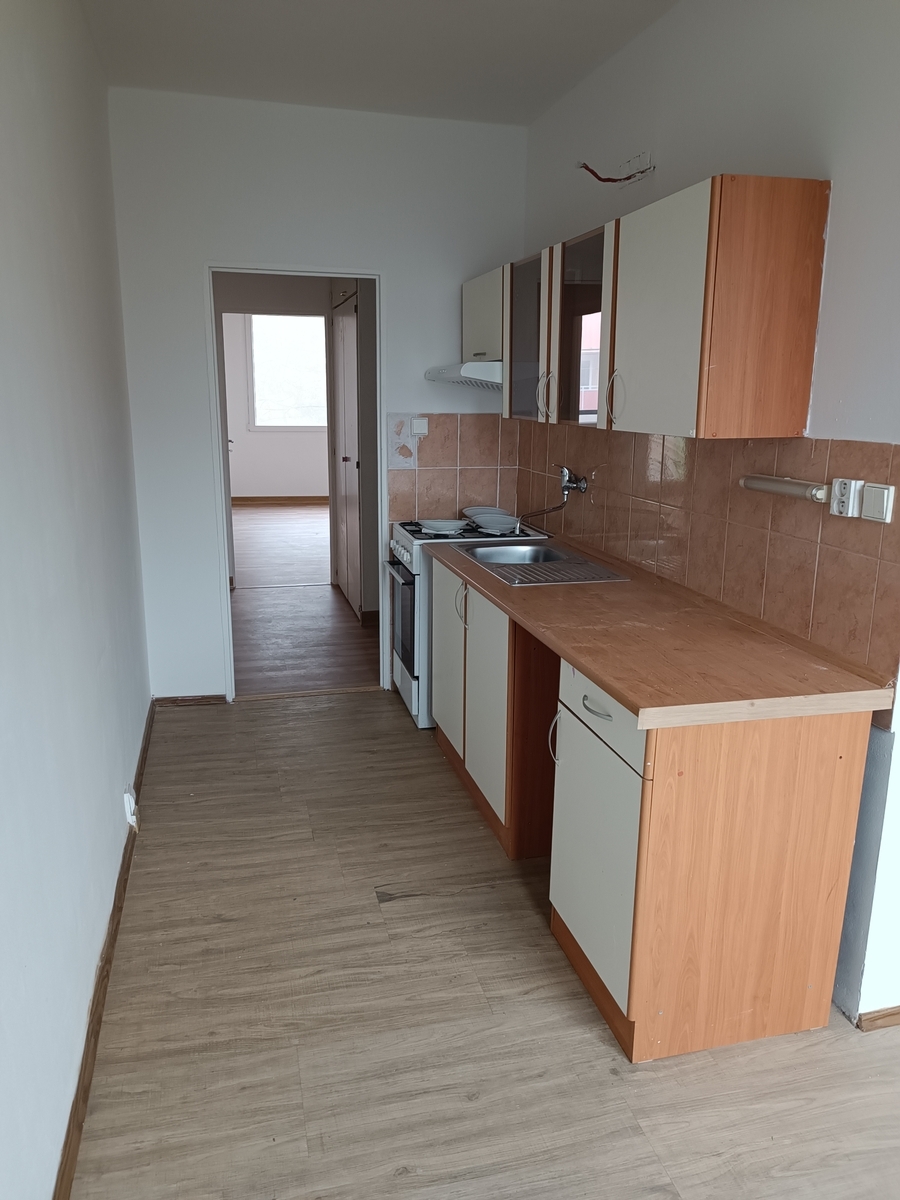 Byt se nachází v postupně rekonstruovaném domě, který je posazen kousek od centra. Byt s kuchyňskou linkou, sporákem, plovoucí podlahy v celém bytě, zděná koupelna s vanou. Po vstupu do bytu je předsíň se šatnou, prostorná kuchyň, obývací pokoj s balkonem, ložnice, koupelna, WC. Byt je bez vybavení, volný k nastěhování ihned. Velmi dobrá občanská vybavenost a dostupnost do centra. Doporučuji - levné dálkové vytápění oproti plynu, nízké náklady na bydlení.