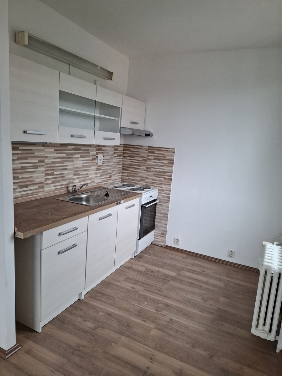 Byt se nachází v postupně rekonstruovaném domě, který je posazen kousek od centra. Byt s kuchyňskou linkou, sporákem, plovoucí podlahy v celém bytě, zděná koupelna. Po vstupu do bytu je předsíň, kuchyň s obytnou místností, koupelna, WC, ložnice. Byt je bez vybavení, volný k nastěhování ihned. Velmi dobrá občanská vybavenost a dostupnost do centra. Doporučuji - levné dálkové vytápění oproti plynu, nízké náklady na bydlení.