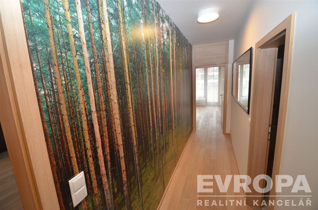Interiér bytu je rozdělen do tří pokojů a dvou koupelen s wc. Byt je vybaven luxusními a kvalitními elektrospotřebiči včetně vestavěné elektrické trouby, indukční desky, lednice, mrazáku, myčky na nádobí a odsavače par.