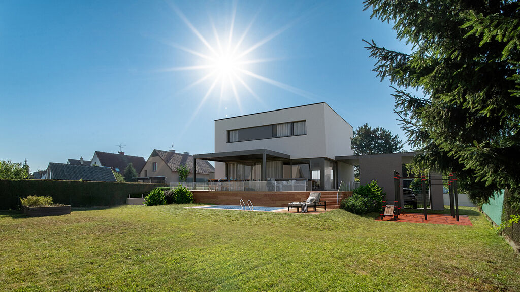 Objekt rodinného domu tvoří v návrhu dvě nadzemní podlaží a jedno podzemní podlaží. Dům na přiložených vizualizacích přesně odpovídá stavebnímu povolení a obsahuje jednu bytovou jednotku a v 1PP se nachází také provozovna (showroom, kancelář, posilovna). Ve schváleném projektu je zanesena bioklimatická pergola, bazén, terasa, přístřešek pro auta. Přípojky jsou připravené na hranici pozemku.