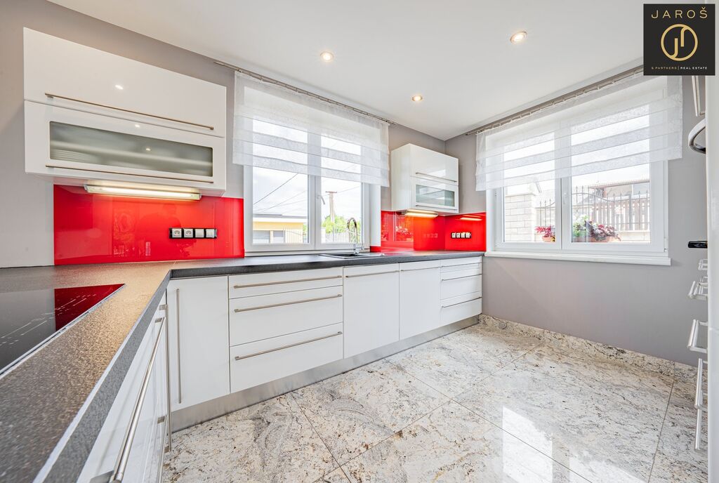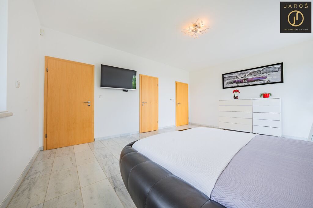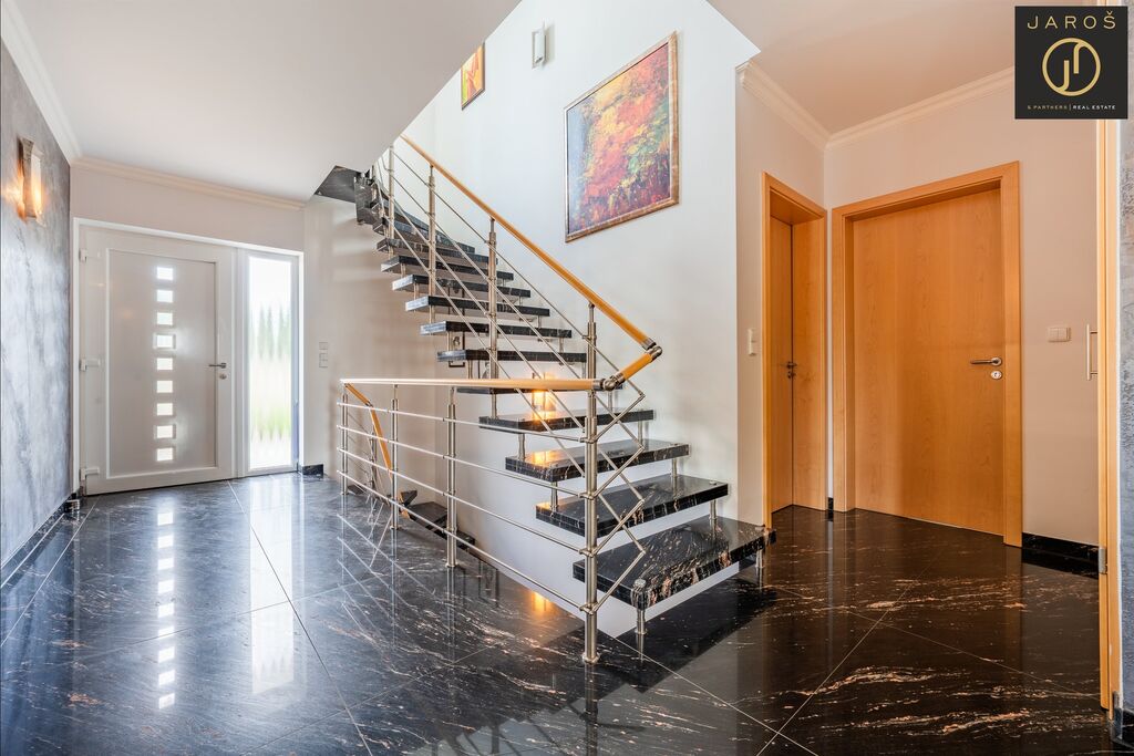 Dům byl postaven v roce 2014 z kvalitních materiálů a nabízí vše, co si můžete přát od moderního rodinného bydlení – prostor, soukromí a důraz na detail. Celková užitná plocha činí 411 m², pozemek má 1 433 m², z toho samotná zahrada zabírá 1 193 m². Přestože se jedná o velkoryse řešený dům, jeho provoz je díky moderním technologiím velmi úsporný – budova spadá do energetické třídy B (velmi úsporná). Součástí je také samostatně stojící dvojgaráž s dílnou o výměře 48 m², kde je připraveno připojení pro nabíjení elektromobilu.
