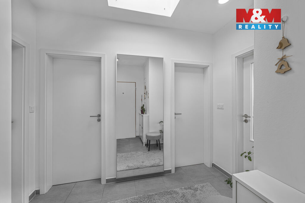 Nabízíme k prodeji moderní byt 3+kk o užitné ploše 59 m², situovaný v klidné části pražského Černého Mostu. Byt se nachází v posledním, 5. nadzemním podlaží cihlového domu z roku 2017 a nabízí krásný výhled z terasy o ploše 15 m². Součástí prodeje je také garážové stání a sklep. Byt disponuje kvalitní kuchyňskou linkou ORESI s vestavěnými spotřebiči značky Electrolux. Komfort obytných prostor zajišťují klimatizační jednotky v obývacím pokoji a ložnici, s venkovní jednotkou umístěnou na střeše. Všechna okna jsou vybavena elektricky ovládanými předokenními žaluziemi 90 Z. Nemovitost je ve velmi dobrém stavu a připravena k okamžitému nastěhování. Ideální volba pro ty, kteří hledají klidné bydlení s výbornou dostupností služeb.