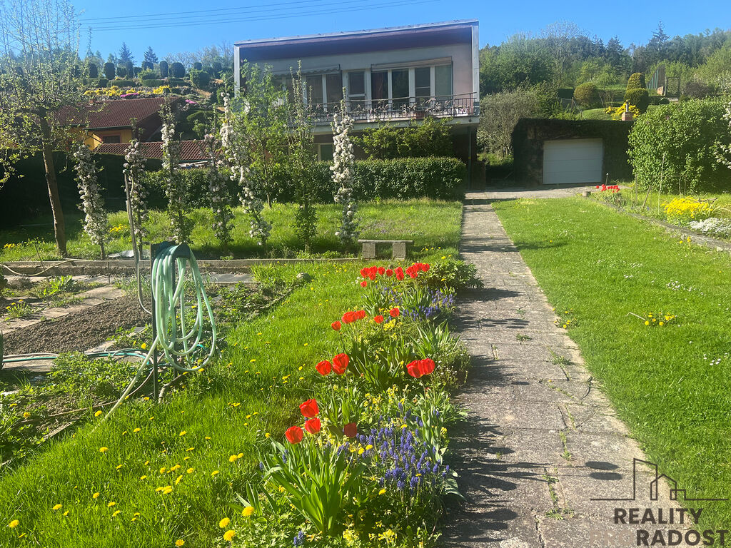 - garáž s dílnou (26 m²), kůlna na dřevo a zahradní domek,