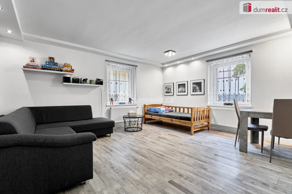 Dumrealit.cz Vám zprostředkuje prodej pěkného moderního bytu o velikosti 3+kk v Jáchymově ve velmi klidné a žádané lokalitě. Bytová jednotka o ploše 59 m² se nachází v 1. NP udržovaného zatepleného cihlového domu a je po kompletní rekonstrukci. Má nové el. rozvody, plastová okna, koupelnu s vanou, sprchovým koutem, umyvadlem a místem na pračku, samostatné WC s okénkem, podlahy z dlažby, PVC a plovoucí, podhledy s bodovými světly, interiérové dveře, z toho jedny posuvné skleněné. V předsíni a v ložnici jsou vestavěné skříně, vyrobené na míru, stejně jako kuchyňská linka s vestavěnými spotřebiči (sklokeramická deska, horkovzdušná trouba, mikrovlnná trouba). Byt je vytápěn el. kotlem s rozvodem do radiátorů, teplou vodu zajišťuje el. bojler. Obojí je umístěno ve sklepě, který je situován přímo pod bytem. Obec Jáchymov je obklopená krásnou krušnohorskou přírodou s mnoha turistickými, cyklistickými a běžeckými trasami, lyžařská střediska jsou ve vzdálenosti cca 5-10 km. Vzhledem k tomu, že před zadáním do inzerce nebyl vyhotoven PENB, je tento byt v souladu s platným zákonem zařazen do energetické třídy G. Tuto nemovitost lze hradit hypotečním úvěrem, který Vám rádi pomůžeme vyřídit v našem hypotečním centru. Ev. číslo: 652649.