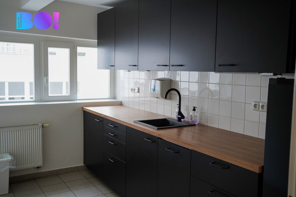 Služby: 85 Kč/m²/měsíc bez DPH (teplo, TUV, studená voda/kanalizace, odvoz odpadu, úklid společných prostor a sociálek, zajištění 24/7 přístupu)