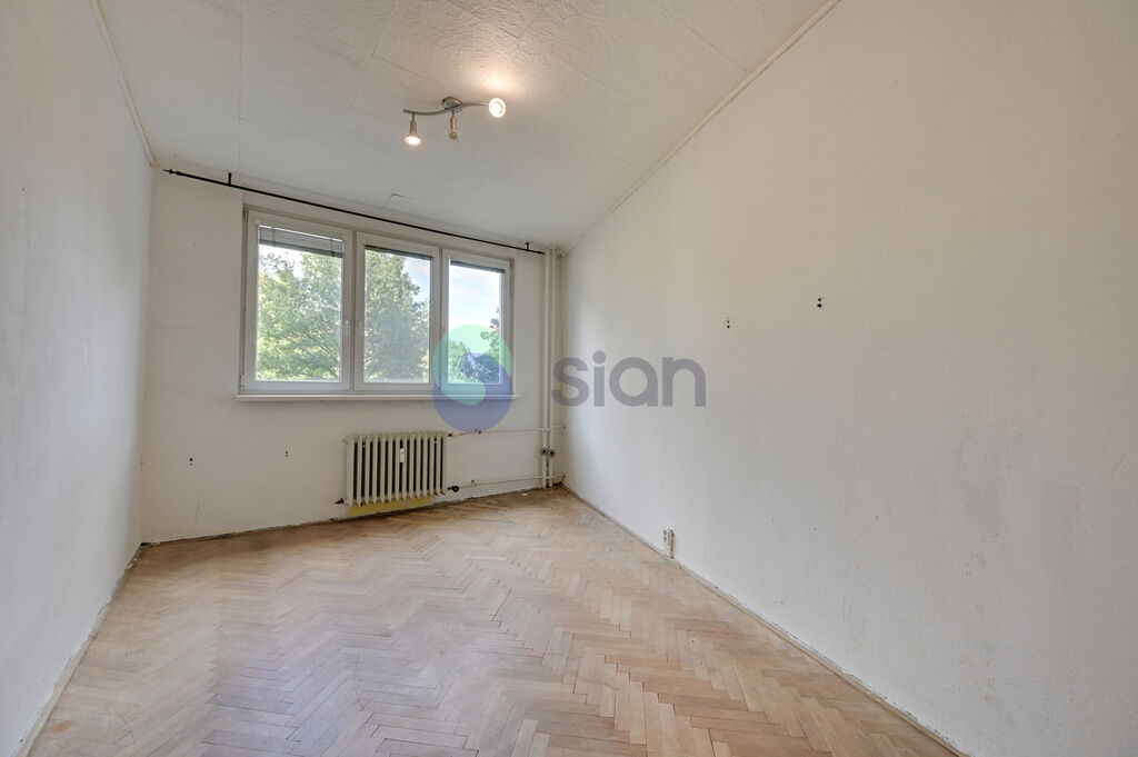Na velkorysé podlahové ploše, která se jen tak nevidí, se nachází prostorný průchozí obývací pokoj a další tři neprůchozí místnosti. Originalitu bytu podtrhuje poslední pokoj netradičního lichoběžníkového tvaru, jenž plynule navazuje na samostatnou komoru. Velkou výhodou je, že některé stěny nejsou nosné, a dispozici je tak možné částečně upravit podle vlastních potřeb. Součástí bytu je také prostorná kuchyně, kam se vejde rohová linka, koupelna a předsíň s dostatkem místa například pro vestavěné skříně. Byt je velmi světlý, s okny orientovanými na obě strany a uklidňujícím výhledem do zeleně. Nachází se v udržovaném panelovém domě, který prošel kompletní rekonstrukcí. Dům se pyšní energetickou třídou B – velmi úspornou.