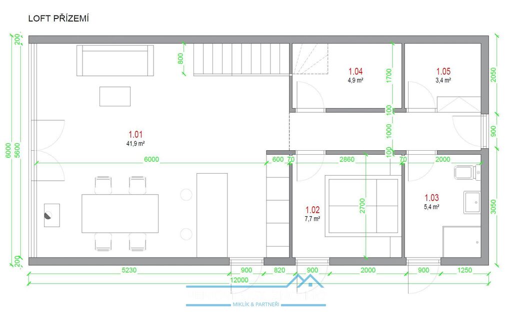- Dům je řešen jako nízkoenergetická dřevostavba s důrazem na zdravé bydlení a nízké provozní ná klady.