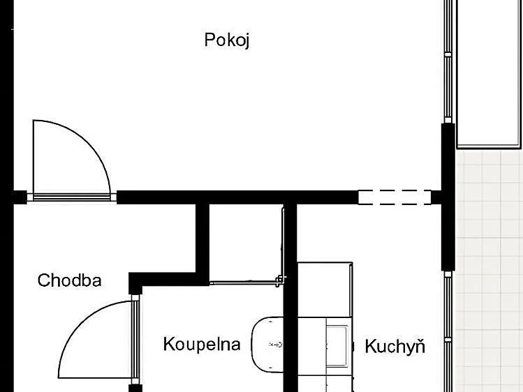 Je zde pěkná, malá kuchyňka s elektrickým sporákem. Lednice nebude součástí vybavení kuchyně.
