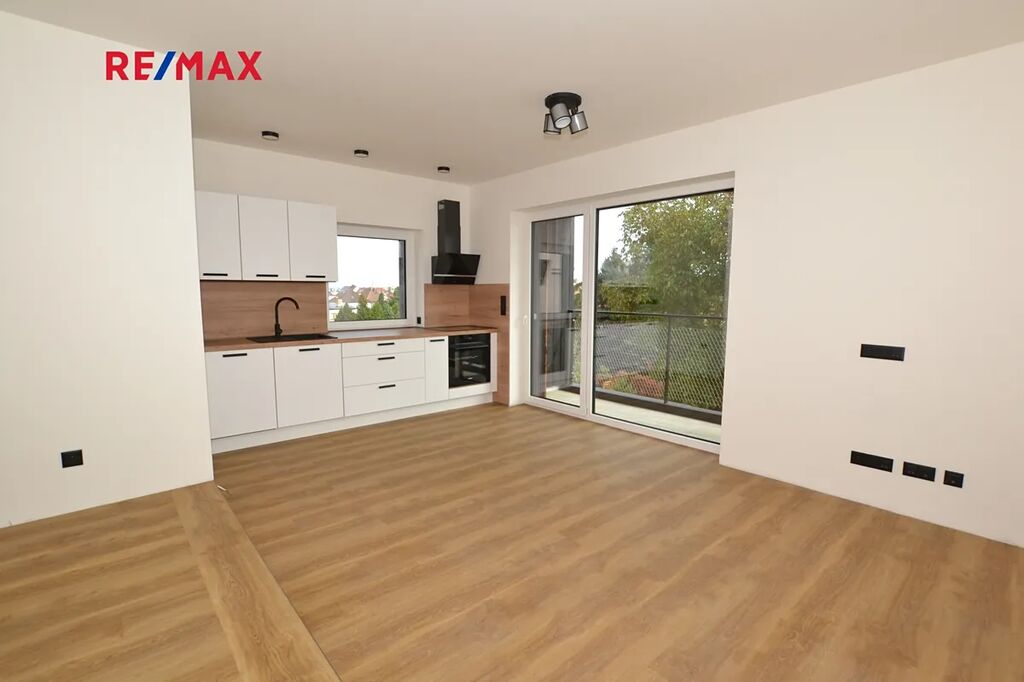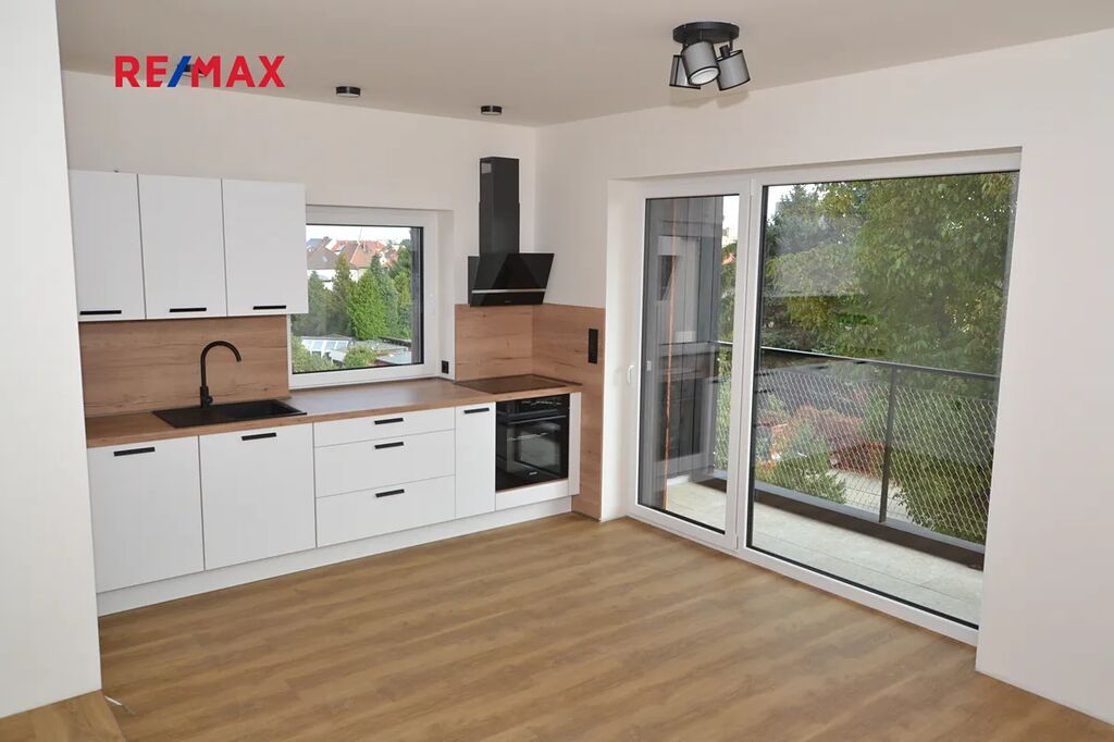 V obývacím pokoji je k dispozici moderní kuchyňská linka s indukční varnou deskou a multifunkční troubou, z obývacího pokoje je vstup na lodžii.