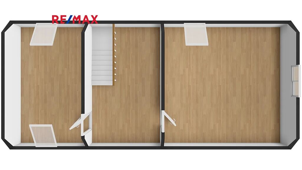 1. NP - vstupní předsíň, chodba se schodištěm do 2. NP, kuchyně, obývací pokoj se vstupem na terasu a zahradu, prostorná koupelna s WC.