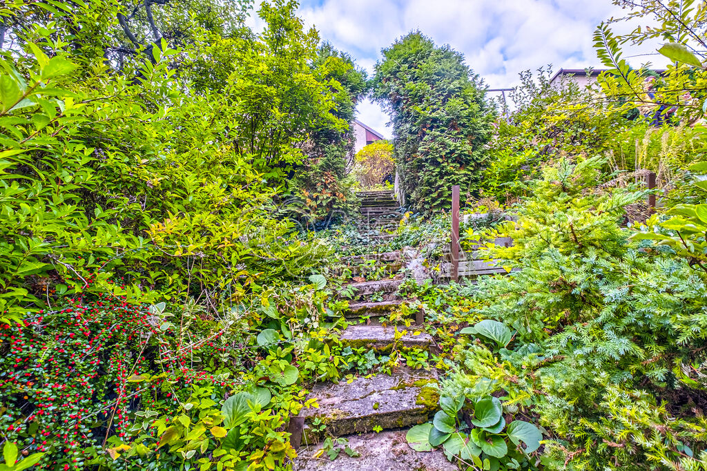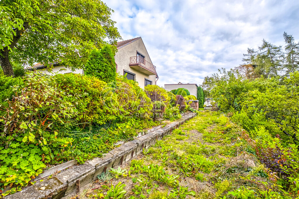 Zahrada je bohatě osázena okrasnými dřevinami i vzrostlými ořešáky a plynule navazuje na lesní pozemek, druhý lesní pozemek je oddělen pouze místní komunikací. Celková plocha pozemku je 3.056 m2, přičemž z toho dům se zahradou jsou na ploše 671 m2, lesní pozemky mají výměru celkem 2.385 m2.
