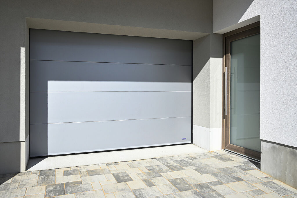 Kvalitní okna s trojskly jsou vybavena zabudovanými venkovními žaluziemi s elektrickým ovládáním, garážová sekční vrata jsou značky TRIDO s DO.