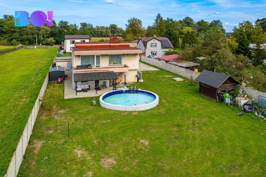 Nově Vám v Dětmarovicích nabízíme k prodeji výjimečný dvougenerační rodinný dům s přijezdovou elektrickou branou a velkým bazénem. Jedná se o dvougenerační dům se dvěma samostatnými vchody, takže poskytuje dokonalé zázemí pro vícečlennou rodinu či možnost spojit bydlení s podnikáním.