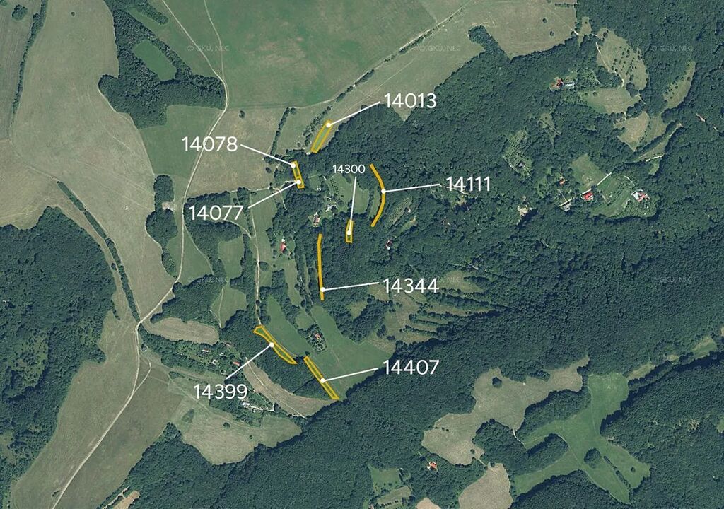 Parc. č. 14111, 14013, 14077, 14078, 14300, 14344, 14399 a 14407, zapsané na LV 3945