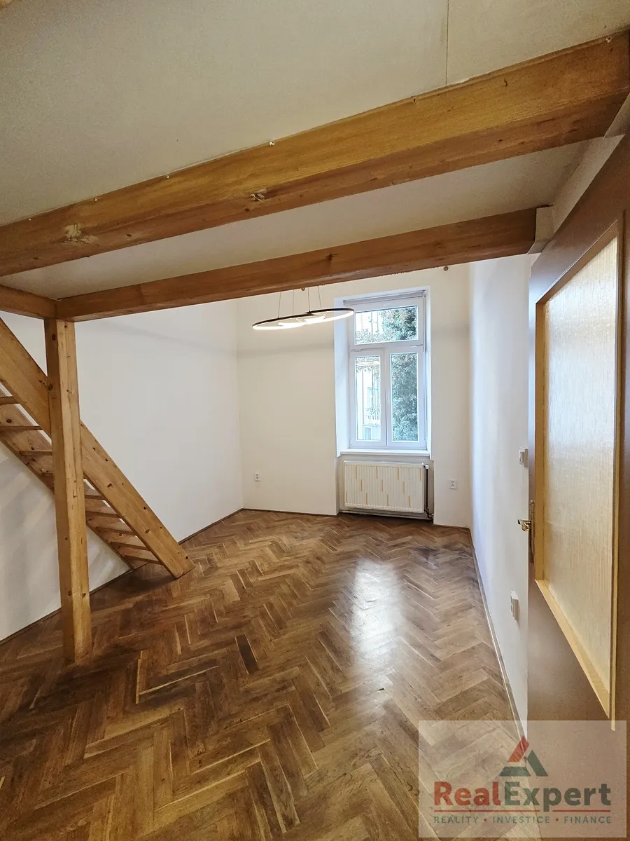 Nabízíme k pronájmu pěkný, částečně zrekonstruovaný byt o dispozici 1+1 v 1 patře udržovaného činžovního domu v Kubově ulici v pražské čtvrti Karlím. Byt s obytnou plochou cca 42 m2 se pronajímá nezařízený nábytkem. Byt se sestává z prostorné kuchyně, obytné místnosti s patrem na spaní, předsíně, komory a koupelny se sprchovým koutem a toaletou. Nová kuchyňská linka s horkovzdušnou troubou, el. varnou deskou, myčkou nádobí a odsavačem par. Po dohodě s pronajímatelem je možno doplnit vybavení o ledničku a pračku. Klidná lokalita s velmi dobrou dopravní dostupností a občankou vybaveností. Volný od 15.10.2025. ID Nabídky 23501